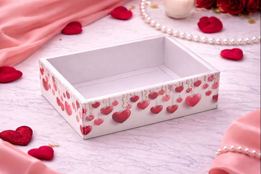 Valentine Heart Print Open Tray Box with Clear Base | Clear Window Hamper Box